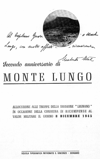 Ora che di anniversari di Monte Lungo ne sono passati più di trenta, i particolari ricordati in queste lettere e diari non sono più attuali; non giunga strano per� a tutti gli Amici dell'Associazione, a tutti i reduci del I raggruppamento, del C.I.L. e del Gruppo di Combattimento "Legnano" se ho inteso di ricordarli.
