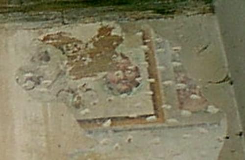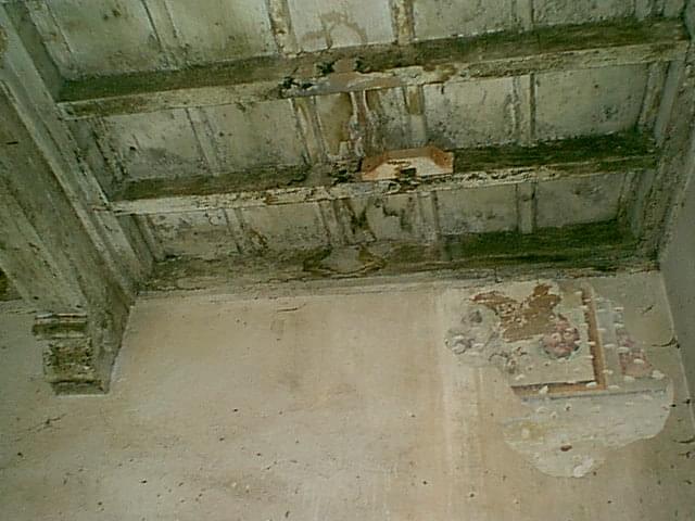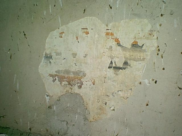 gli affreschi emergono chiaramente sulle pareti di un locale. Notare le travature del soffitto cos� poco "contadine"
